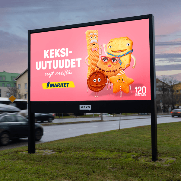 Tavoita valtakunnallisesti ympäri Suomen S-marketien lähettyvillä. Sarja sisältää vaihtelevia spottipituuksia ja sekä still- että videokuvan mahdollistavia mainospintoja. Kohdennussäde PK-seudulla 1 000 m, muu Suomi 2 500 m.