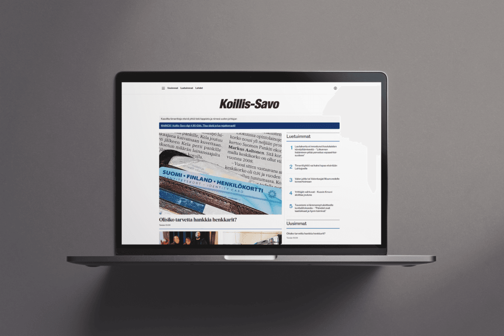 Paikallislehti Koillis-Savon verkkopalvelu koillis-savo.fi tavoittaa tehokkaasti paikallisen, digitaalisia kanavia suosivan yleisön. Se tarjoaa mainostajille laadukkaan ja vaikuttavan mediaympäristön digitaaliseen mainontaan.