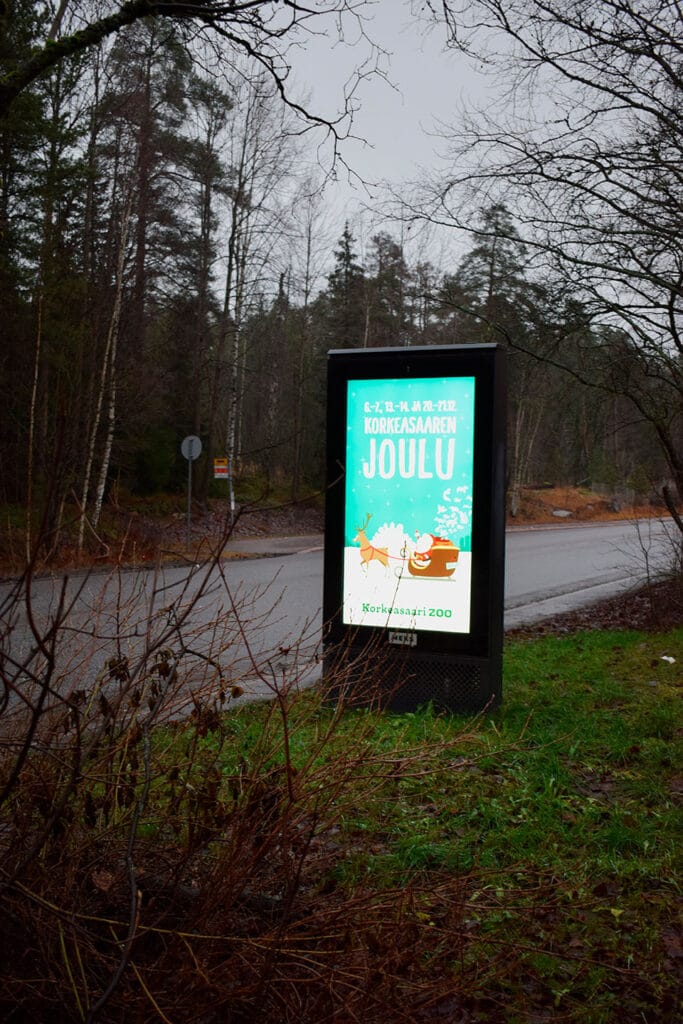 Urbaani digitaalinen kaupunkiympäristömedia luo luontevia kohtaamisia Helsingin esikaupunkialueilla. Vain still. Näyttöaika 06-00.