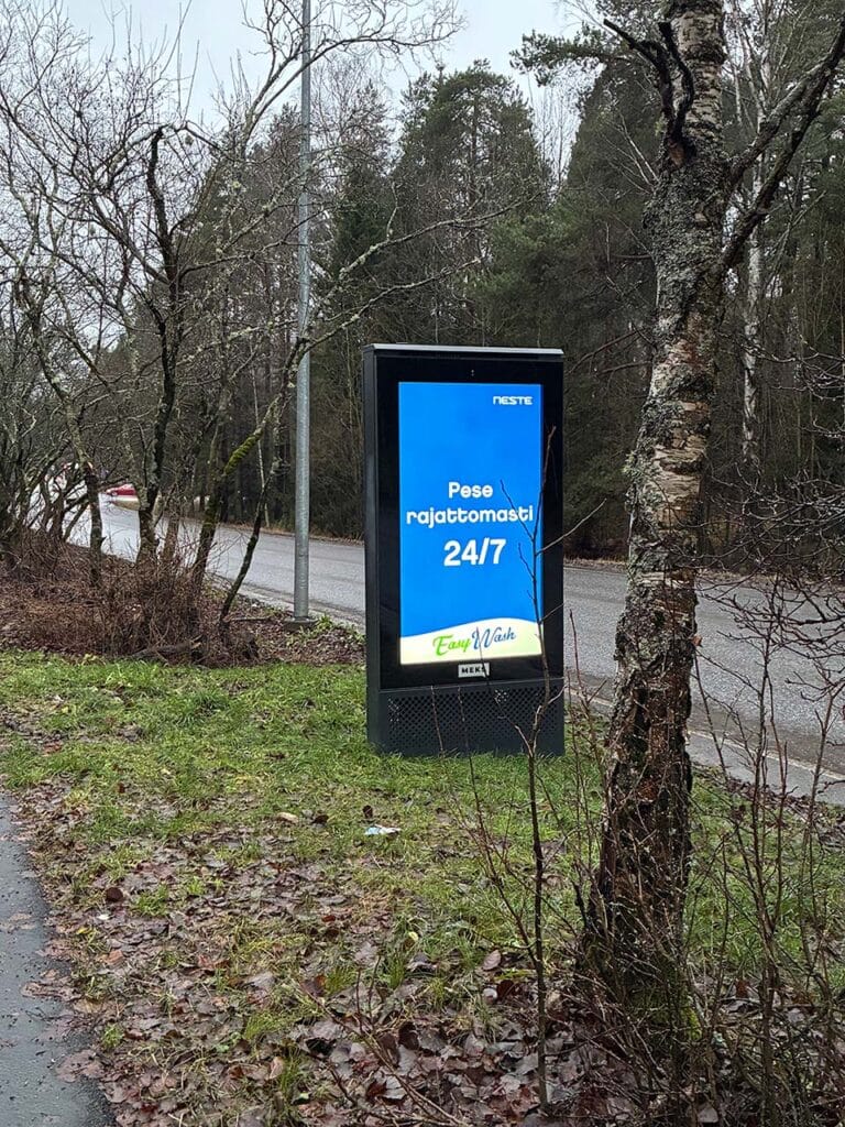 Urbaani digitaalinen kaupunkiympäristömedia luo luontevia kohtaamisia Helsingin esikaupunkialueilla. Vain still. Näyttöaika 06-00.
