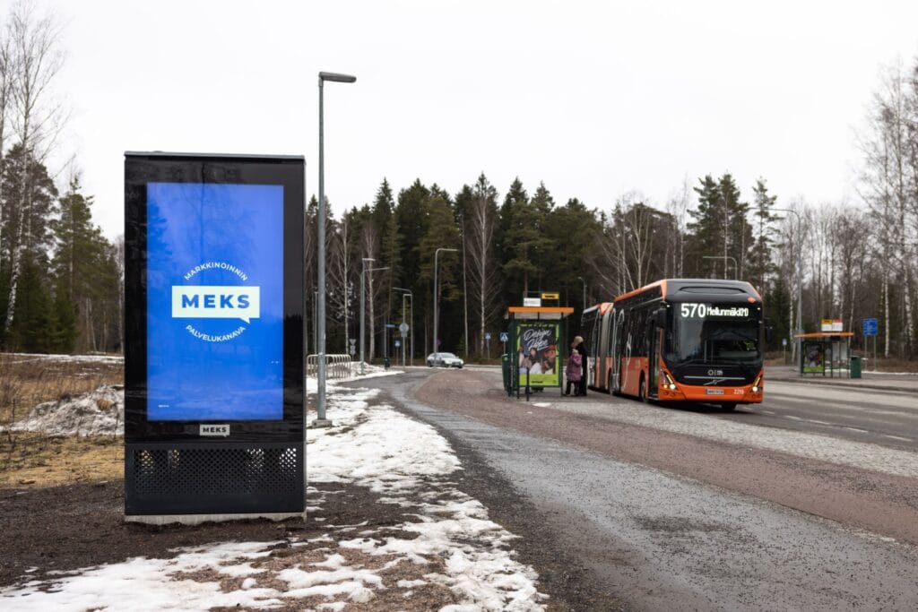 Urbaani digitaalinen kaupunkiympäristömedia luo luontevia kohtaamisia Helsingin esikaupunkialueilla. Näyttöaika 06-00. Video ja still.